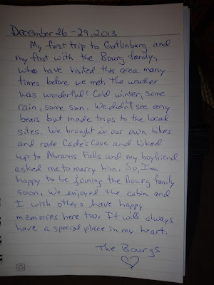Here’s the note Amanda left at the Blue Mist cabin (rented through Mountain Laurel Chalets) as we were packing up to return home: